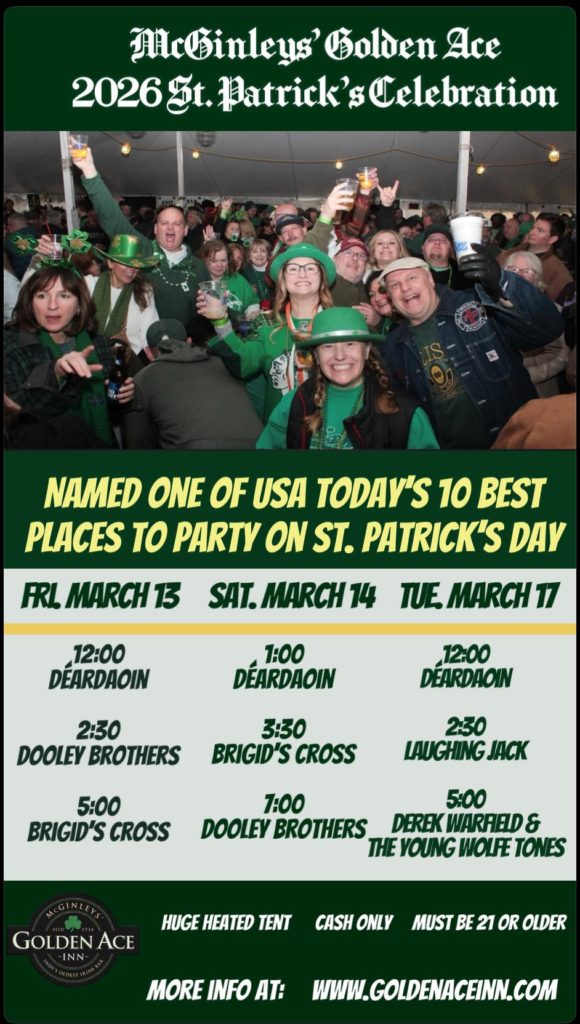 When Irish eyes are smiling…it’s because they’re thinking about the Golden Ace St. Patrick’s Celebration! 2026 will be a three day event–March 13 (Parade Day), March 14 (Party Day) and March 17 (Patrick’s Day). More info to come…